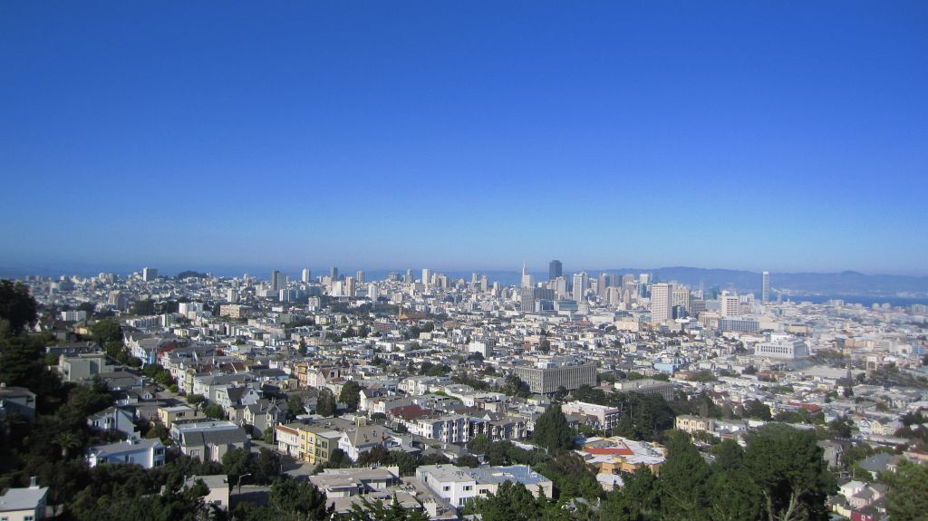 im Corona Heights Park mit Blick auf die Skyline von San Francisco