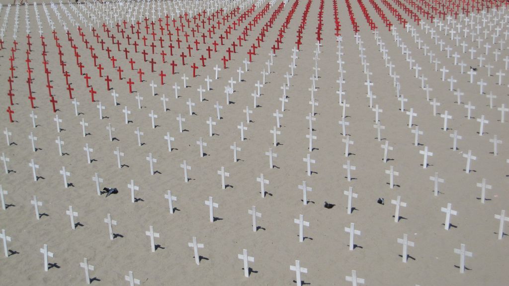 "Arlington West", eine temporäre Gedenkstätte am Strand von Santa Monica...
