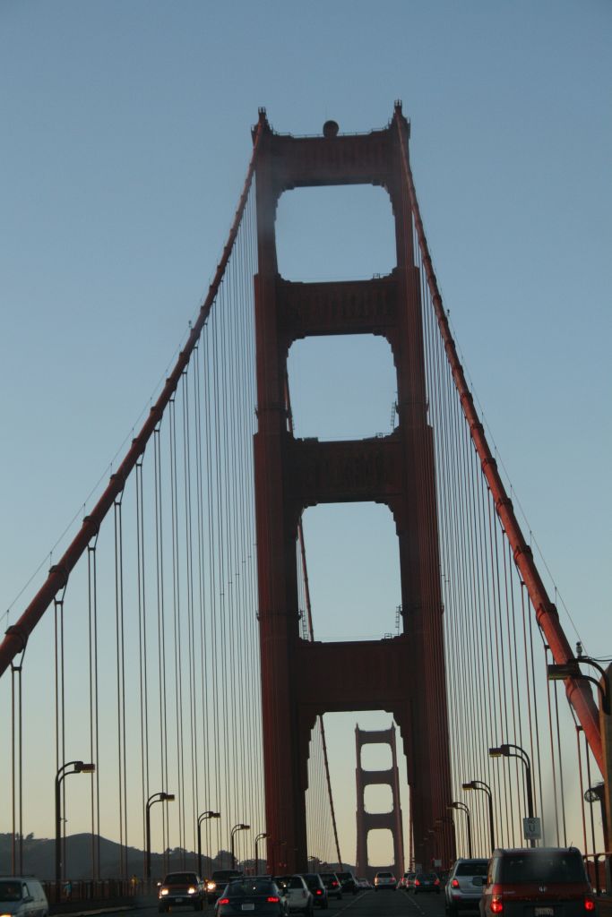 über die sechsspurige Golden Gate Bridge, das Wahrzeichen von San Francisco