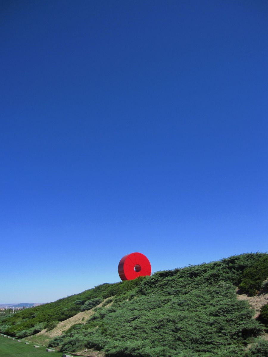 der Park ist voller skurriler Skulpturen, wie bspw. dieser rote Riesen-Donut