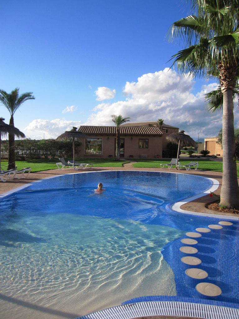 einer der zwei Pools der Finca - im Hintergrund das Spa-Haus mit Sauna, Dampfbad und Whirpool