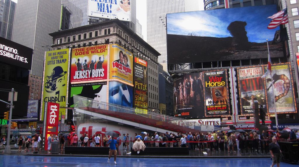 Times Square (benannt nach dem Gebäude T.S.1 der New York Times), Zentrum des Theatervirtels von Midtown Manhattan